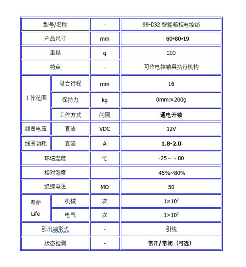 低 功 耗:開鎖瞬間通電時間小于1秒,平時關門上鎖為斷電狀態不耗電;